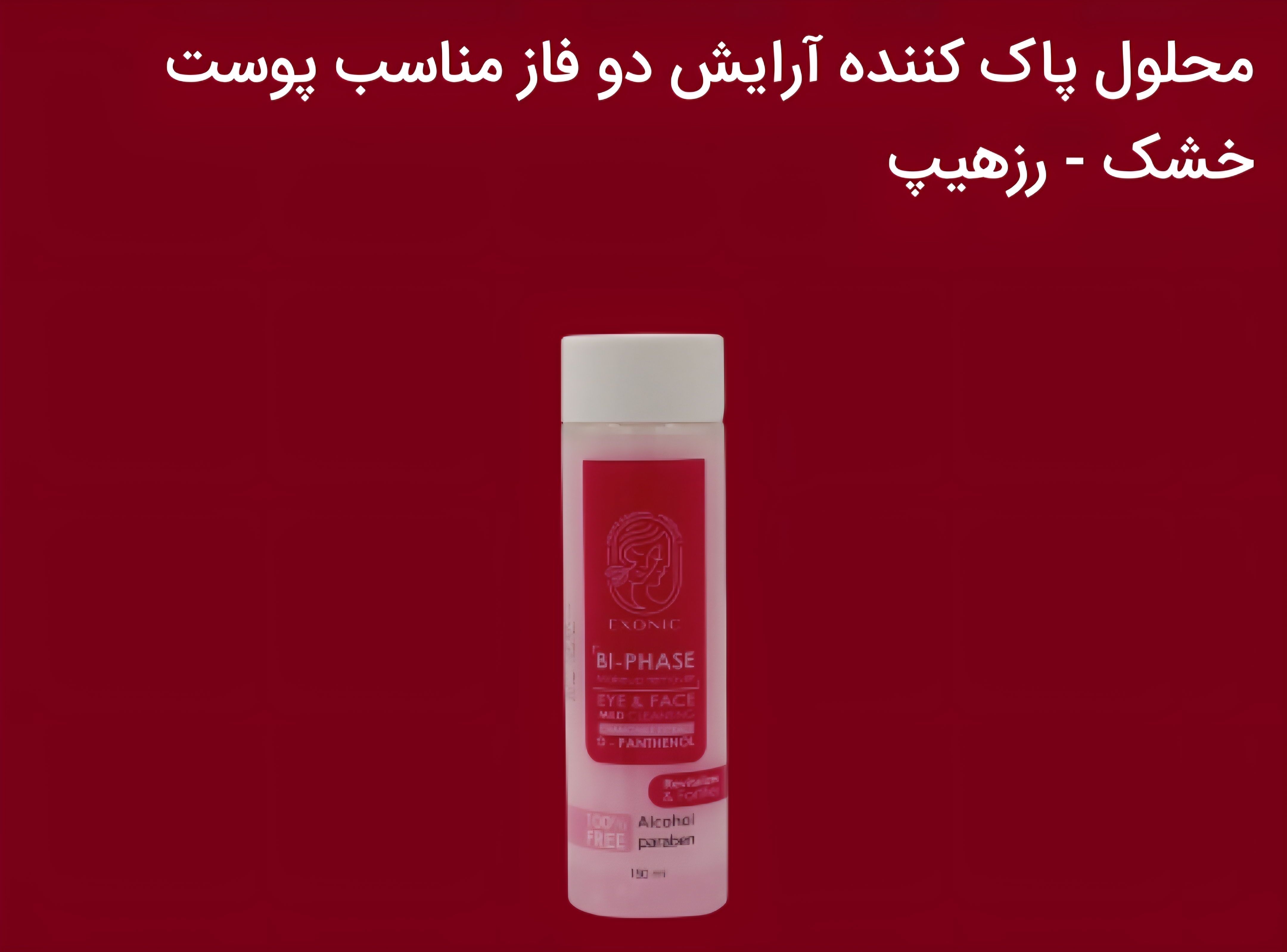 محلول پاک کننده آرایش دوفاز مخصوص پوست خشک _رزهیپ