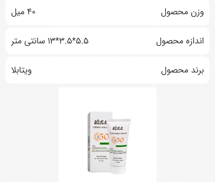 ضدآفتاب spf50 بی رنگ حجم ۴۰ میل ویتابلا